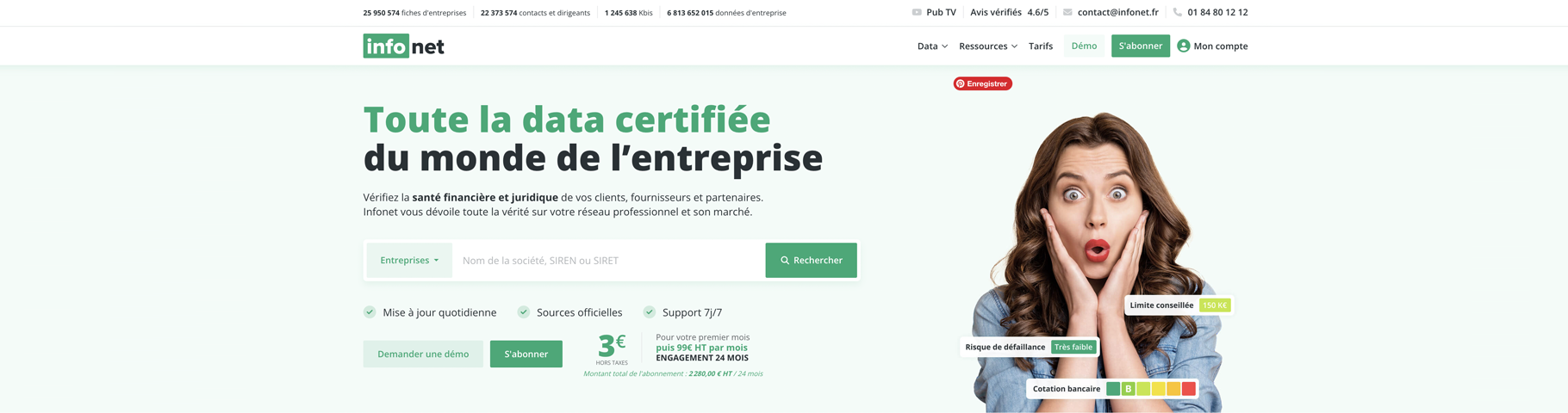 Avis Infonet : Plateforme de données d'entreprise et d'analyse B2B