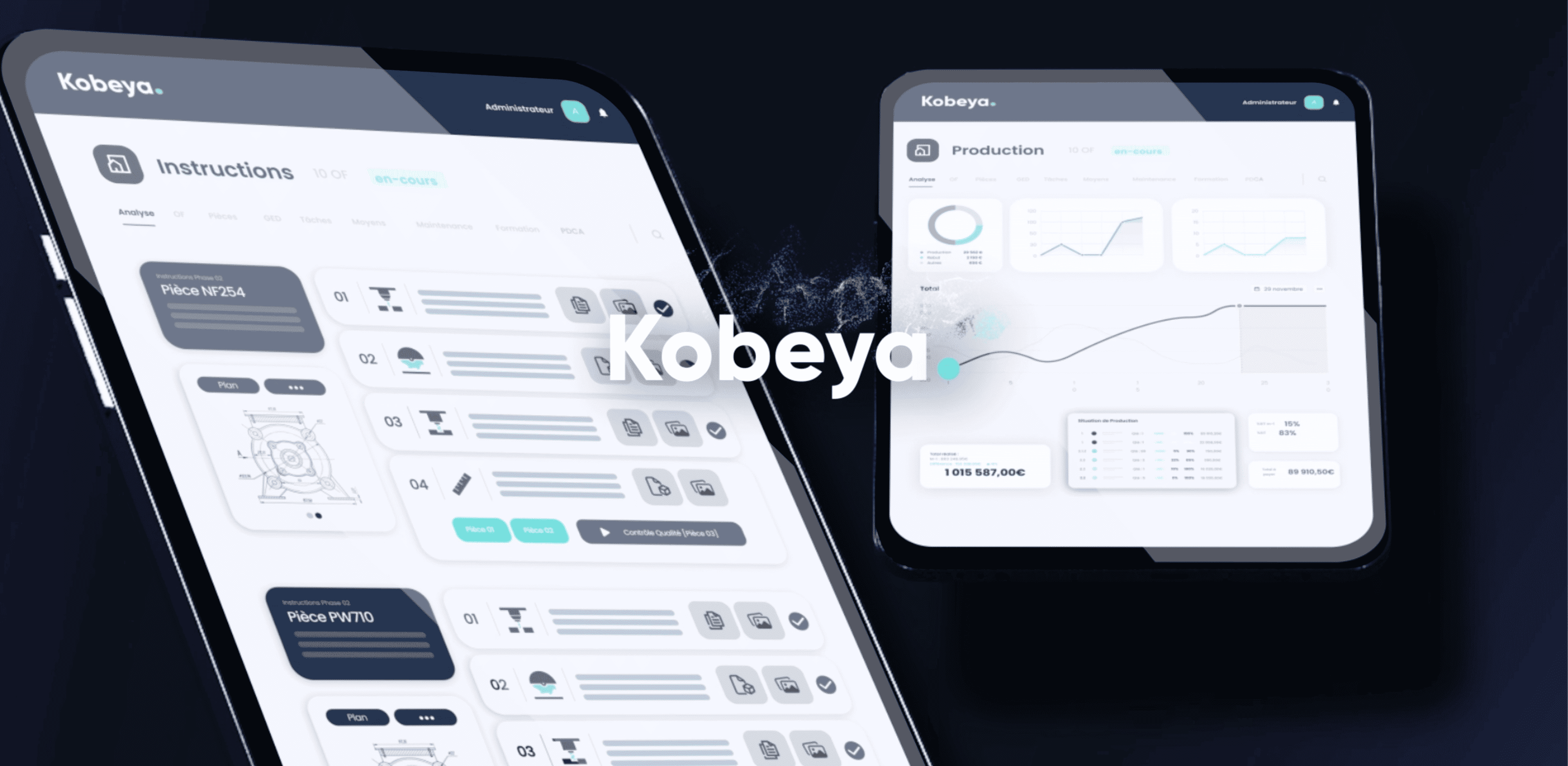 Kobeya permet une gestion centralisée et dynamique des processus de production, offrant une vue d'ensemble en temps réel pour une meilleure prise de décision.