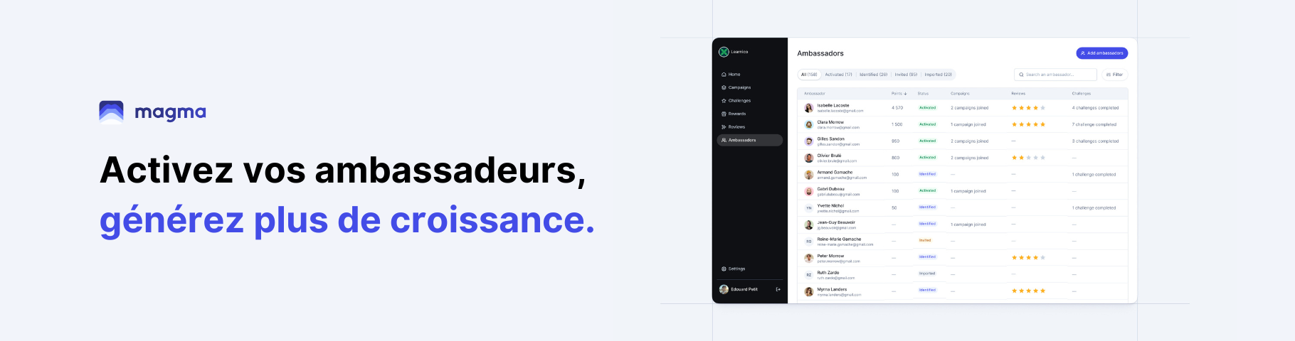 Boostez votre croissance avec vos ambassadeurs grâce à Magma !