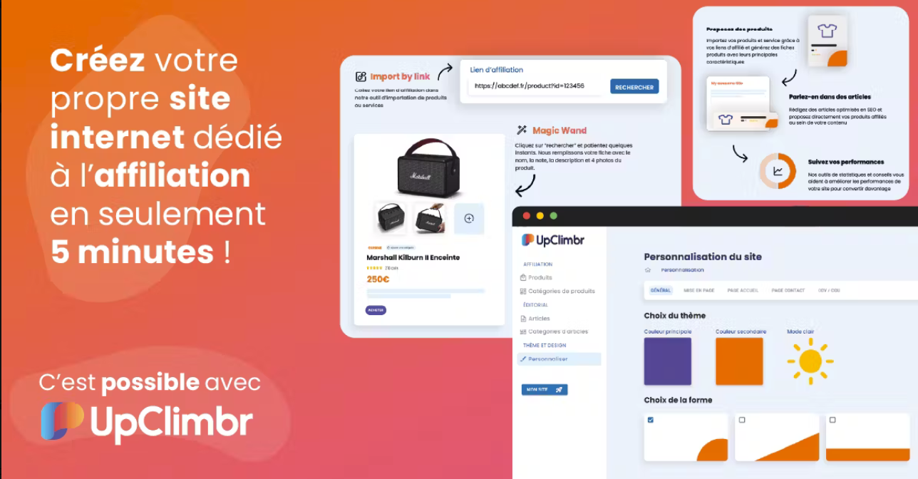 UpClimbr : CMS pour générer son site web optimisé pour l'affiliation
