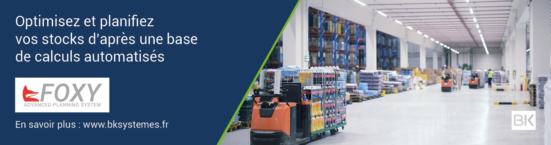 Foxy APS (Advanced Planning and Scheduling) est un logiciel édité et intégré par BK Systèmes pour planifier et optimiser les mouvements de stocks de votre chaîne d'approvisionnement en entrepôt.