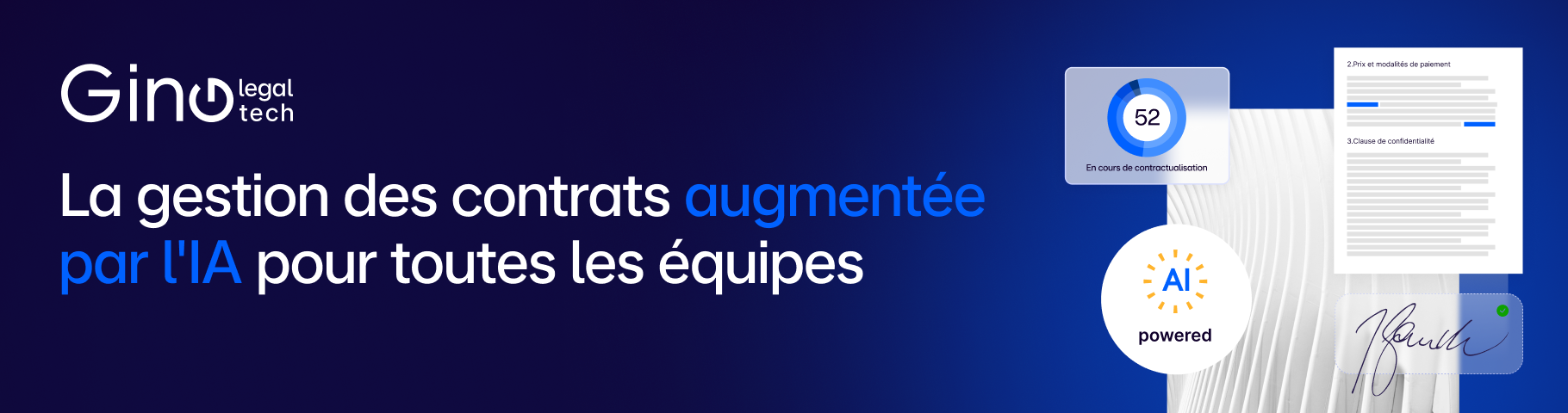 Gino LegalTech est une solution complète de Contract Lifecycle Management (CLM) augmentée par l’intelligence artificielle. Elle aide les directions juridiques et les entreprises de toutes tailles à créer, gérer et analyser leurs contrats plus rapidement et en toute conformité.