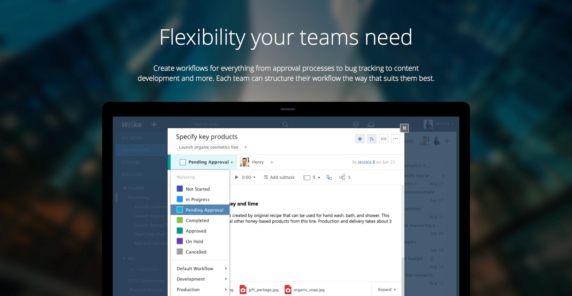 Wrike est clairement orienté sur le bénéfice qu'il peut apporter aux entreprises modernes : plus de productivité, plus d'efficacité, plus de visibilité sur les projets en cours.