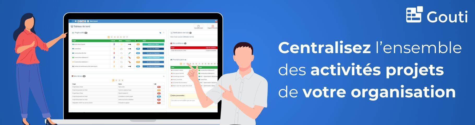 Gouti propose des outils pour organiser efficacement les projets, de leur initialisation à leur suivi opérationnel.