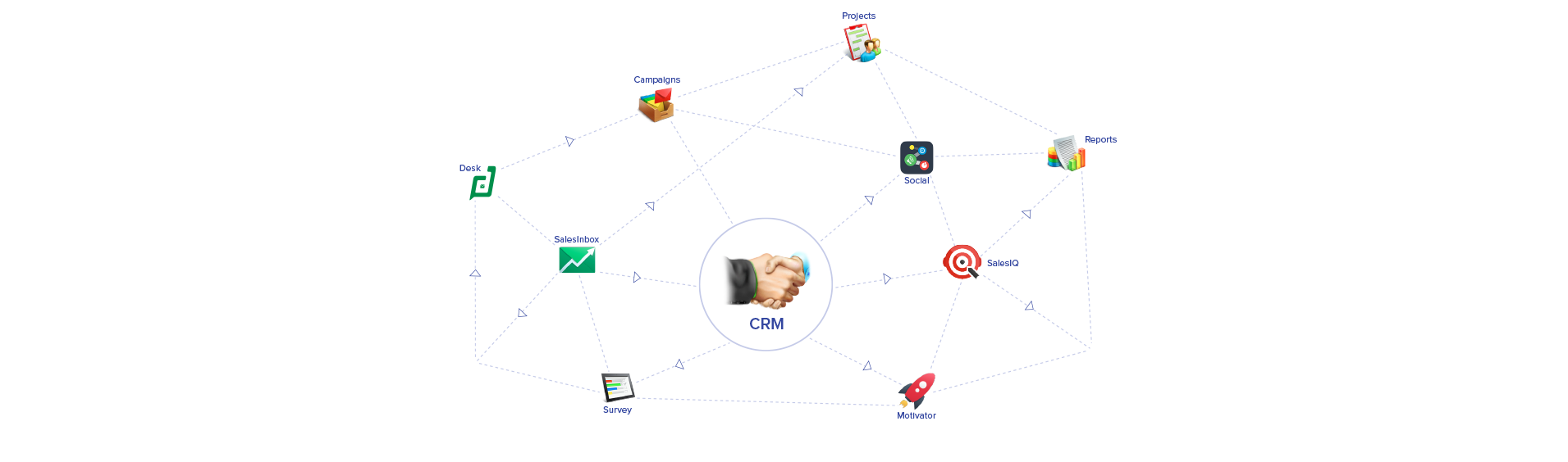 Zoho CRM Plus comprend toutes les applications pour votre entreprise dont vos équipes de vente, de support et de marketing ont besoin, ainsi que d'applications mobiles et d'extensions.