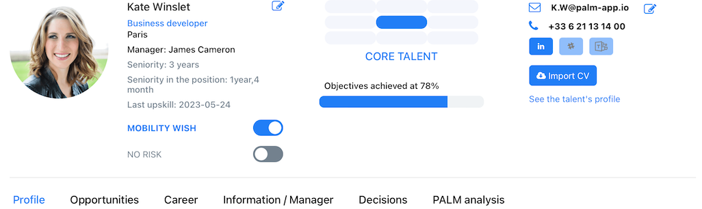 Palm permet une évaluation continue de la performance des collaborateurs tout en identifiant leur potentiel pour les positionner dans des projets stratégiques.