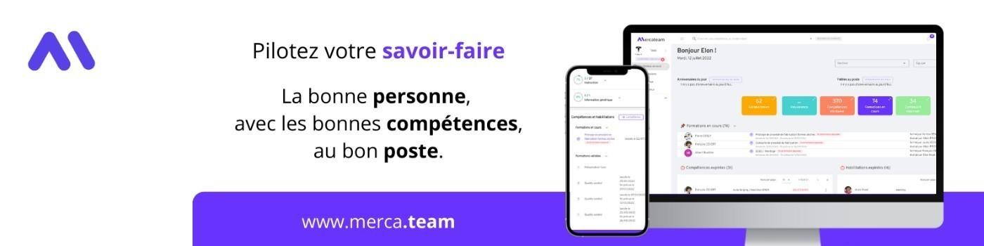 Mercateam est un logiciel SaaS spécialisé dans la gestion des compétences et le planning d’affectation du personnel pour les environnements industriels. Il s’adresse principalement aux responsables de production, RH ou QHSE dans les secteurs agroalimentaire, pharmaceutique, cosmétique, aéronautique, automobile et BTP, au sein d’entreprises de toutes tailles disposant de plusieurs ateliers ou sites.