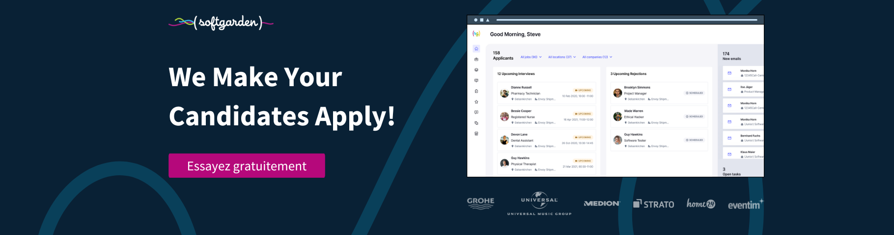 ATS Softgarden propose une solution ATS (Applicant Tracking System) complète pour booster votre recrutement. Avec Softgarden, débarrassez-vous des tâches chronophages et concentrez-vous sur des entretiens de qualité.
