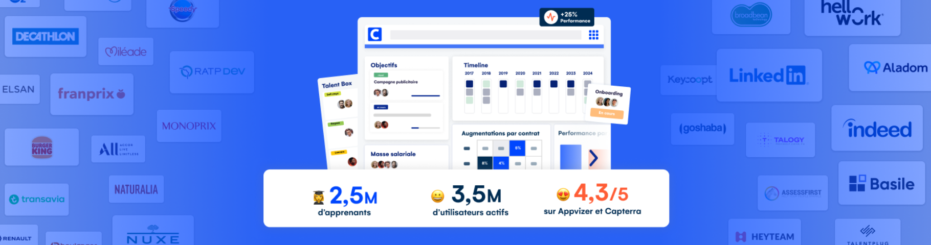 Utilisée par des leaders de la gestion des talents comme AirFrance, Orange, Invivo, OVH, Burger King, Safran..., Cegid HR offre des fonctionnalités clés :