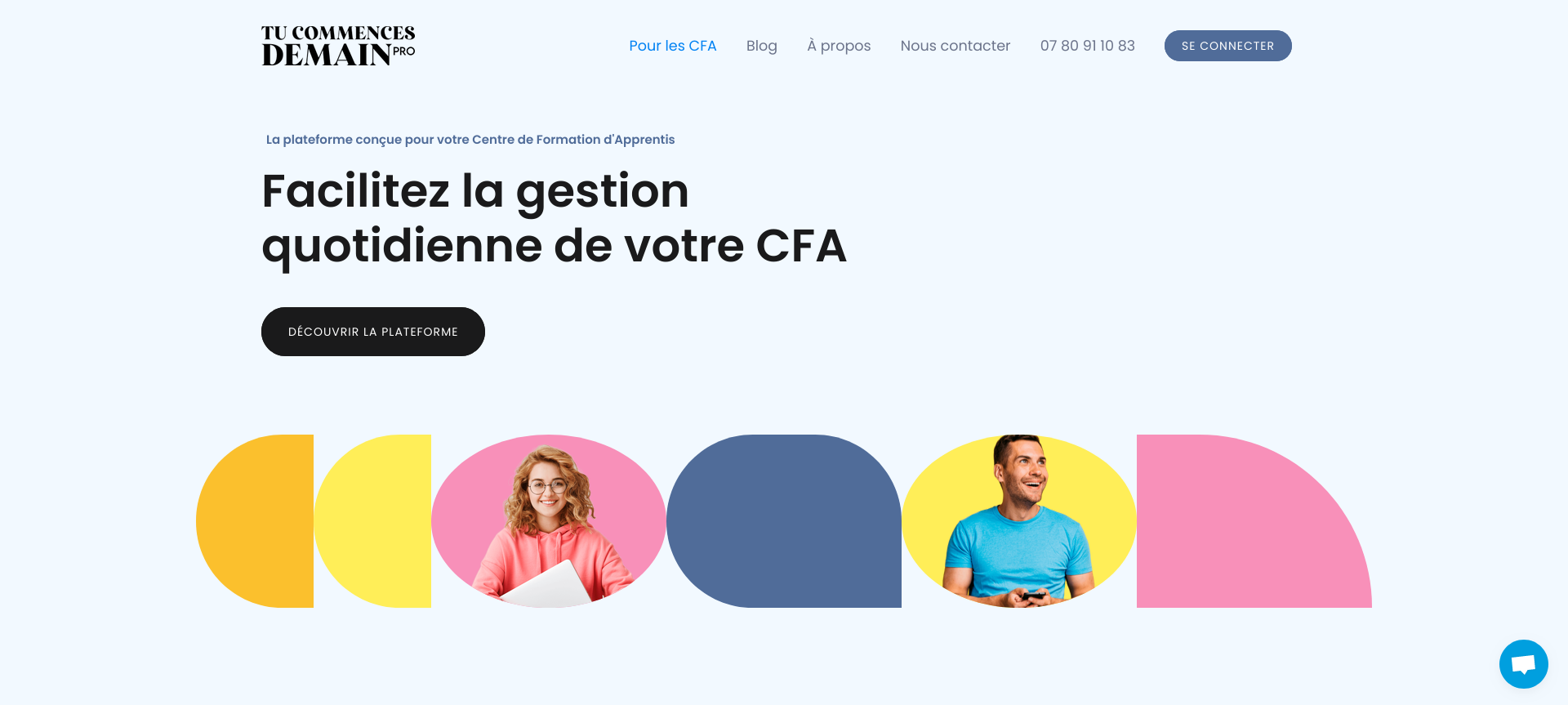 Tu Commences Demain est une plateforme SaaS qui facilite la gestion quotidienne des centres de formations d'apprentis (CFA). La solution permet aux CFA de gérer leurs démarches administratives, pédagogiques et financières de façon simple.