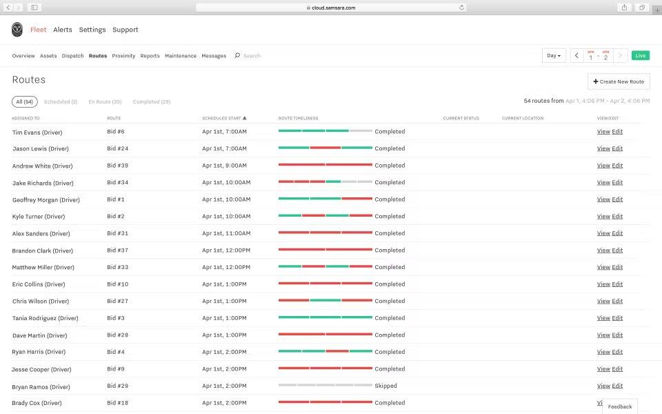 - Dispositifs avancés de télématique : La technologie de télématique Samsara vous permet de géolocaliser en temps réel, et avec précision, vos véhicules.